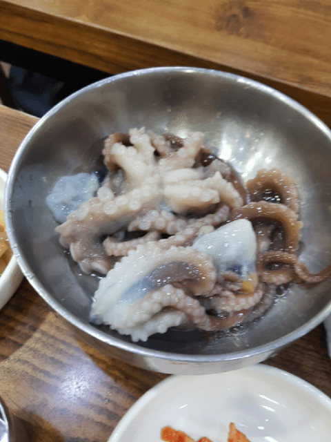 엄청나게 큰 산낙지 2마리가 나왔다.... 싱싱한거라 그런지 엄청나게 꿈틀거렸다!