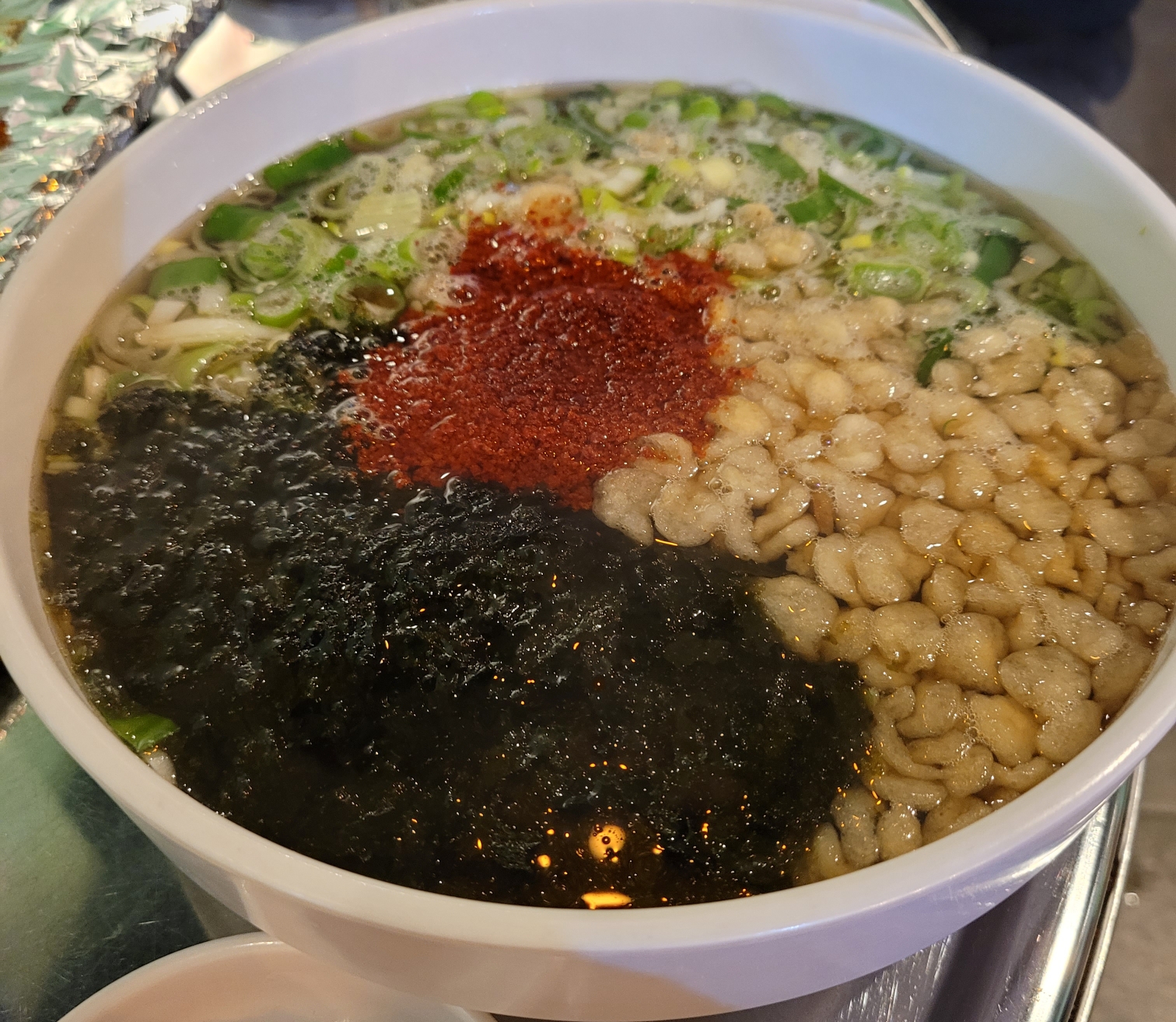 꼼장어만으로는 절대 배가 안찰것같고 국물이 땡기기도 해서 심야우동을 주문했다. 겨우 5,000원인데 맛도 최고에다가 양도 혜자,,,