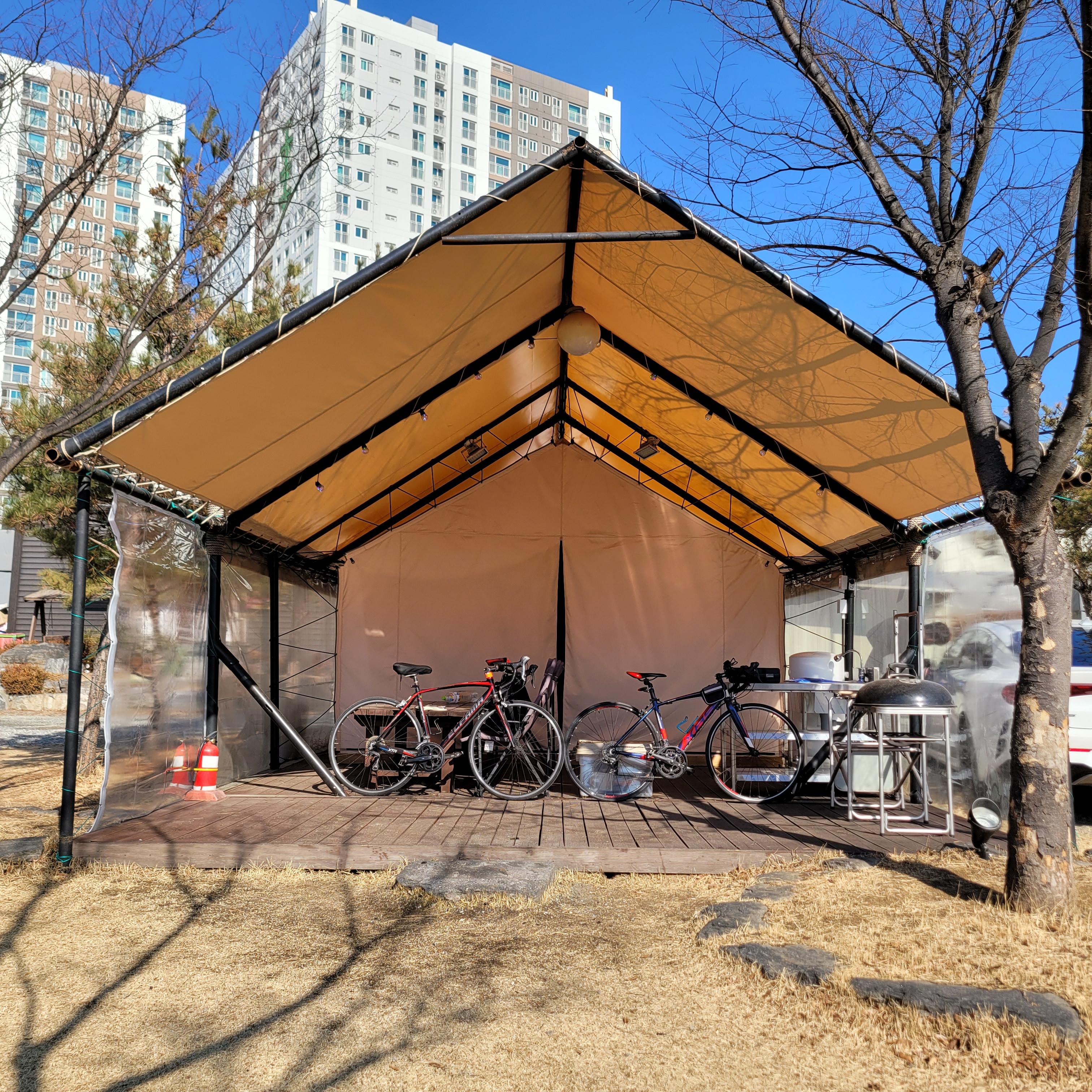 보통 글램핑장은 산속에 있는걸로 아는데 여기는 바로 옆에 아파트가 있다 ㅋㅋㅋ