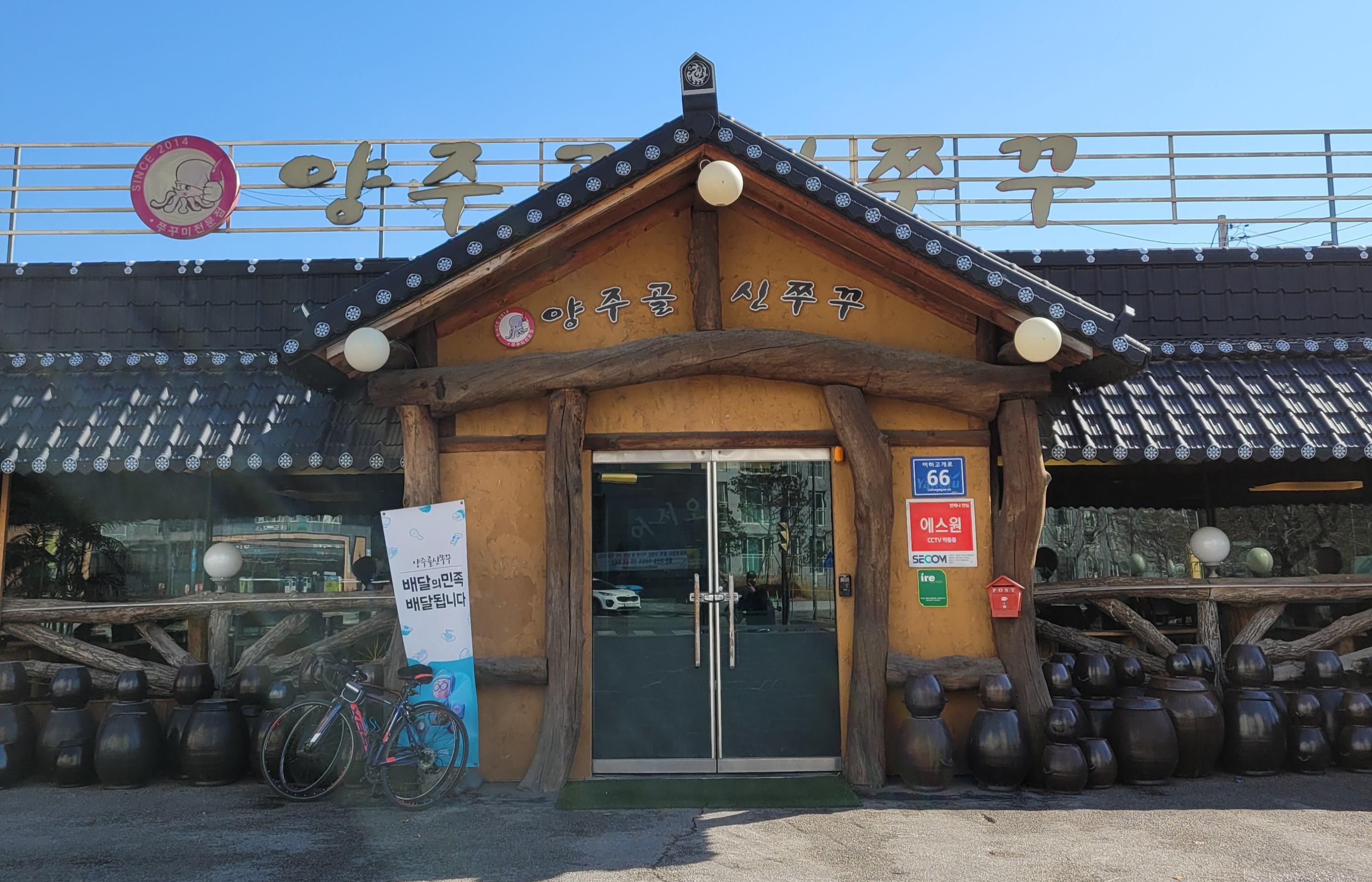 글램핑장을 11시쯤에 나와서 걸어서 10분 이내 거리에 있는 쭈꾸미 집을 갔다!