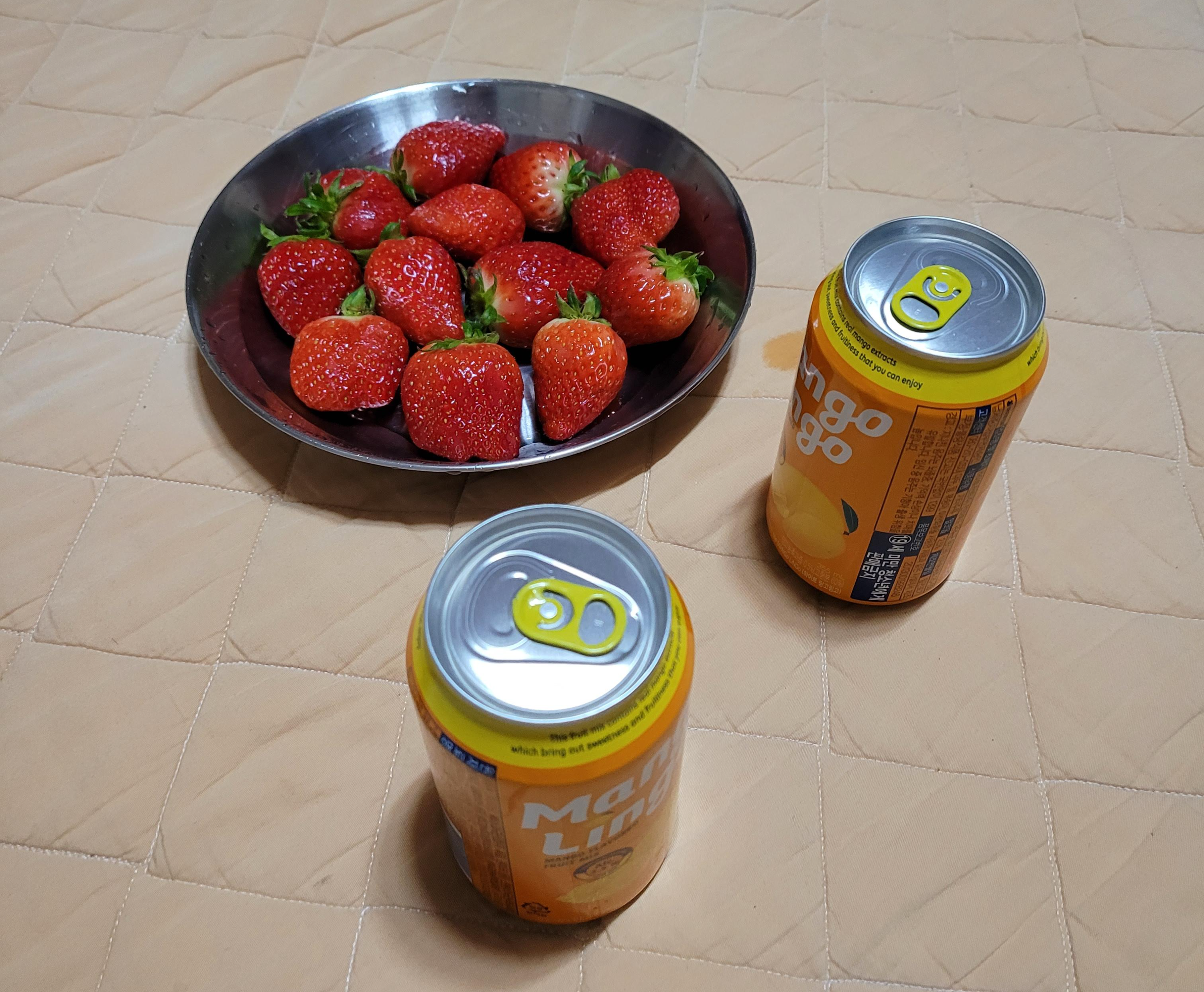 우리는 술찌이기 때문에 술은 망고링고 2캔이랑 참이슬 빨간뚜껑 페트병 1개를 샀다 ㅎㅎ