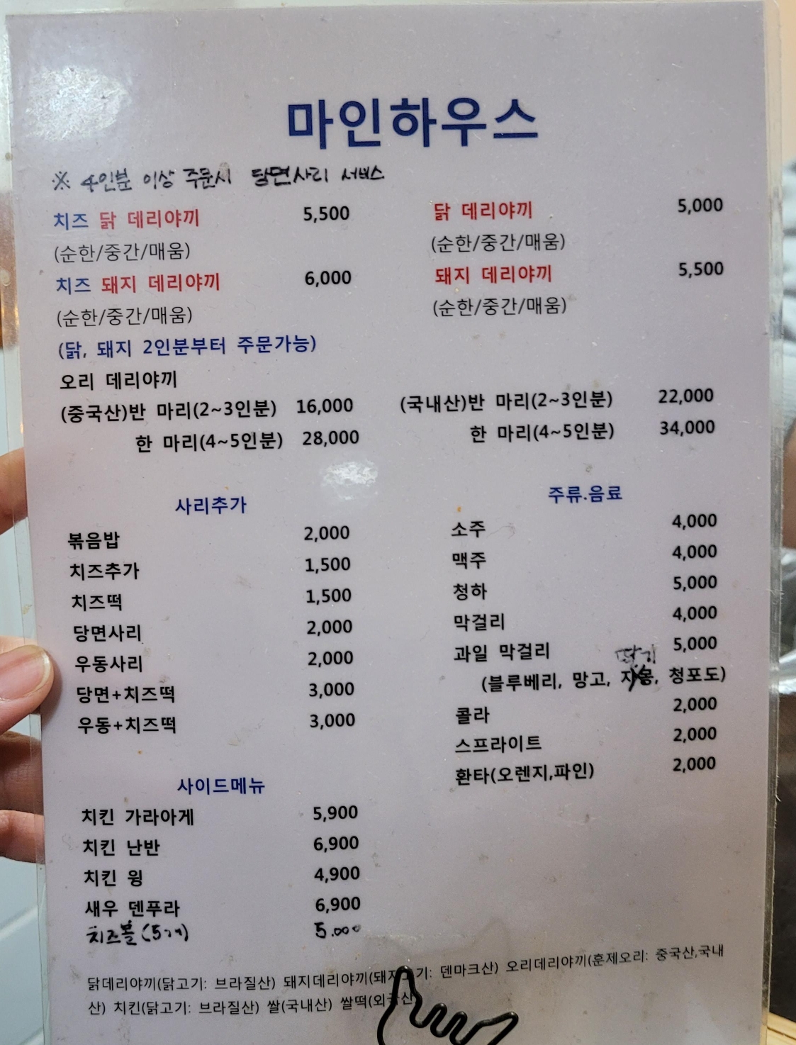 메뉴판을 보면 알 수 있듯이 1인분 가격이 엄청 저렴하다! 게다가 4인분 이상 주문시 당면사리가 서비스로 나와서 더욱 혜자스럽다.