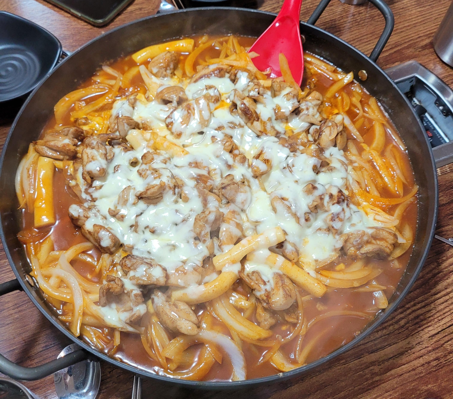 기본적으로 닭갈비, 양파, 떡이 들어있고 4인분을 시켜서 당면사리를 서비스로 넣어주셨다 ㅎㅎ