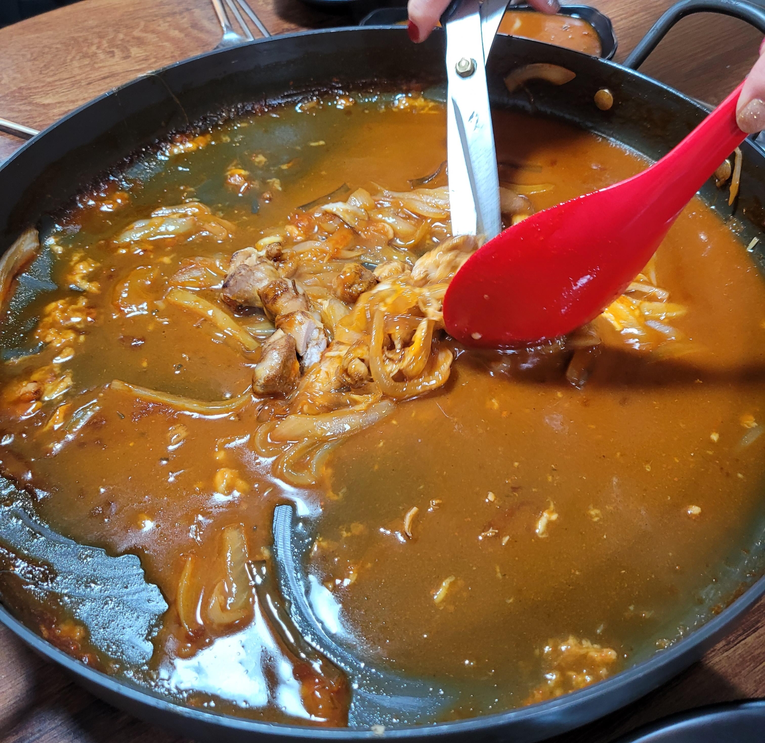 국물을 다 떠내면 남아있는 고기와 떡을 잘게 잘라주신다.