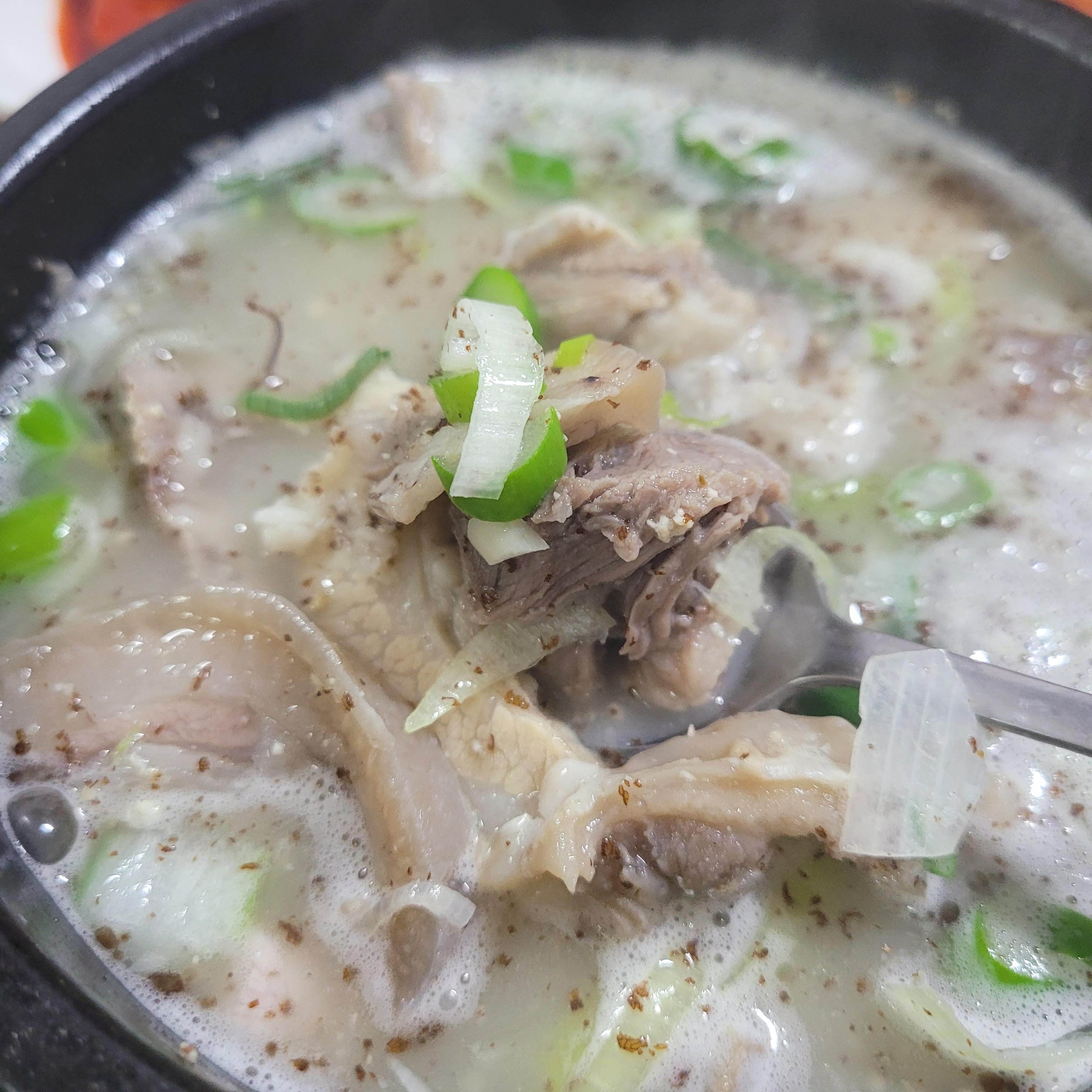 고기가 엄청 많이 들어있다! 잡다한 부위도 많이 있으니 오로지 살코기만 좋아하는 사람은 진국을 가시길,,