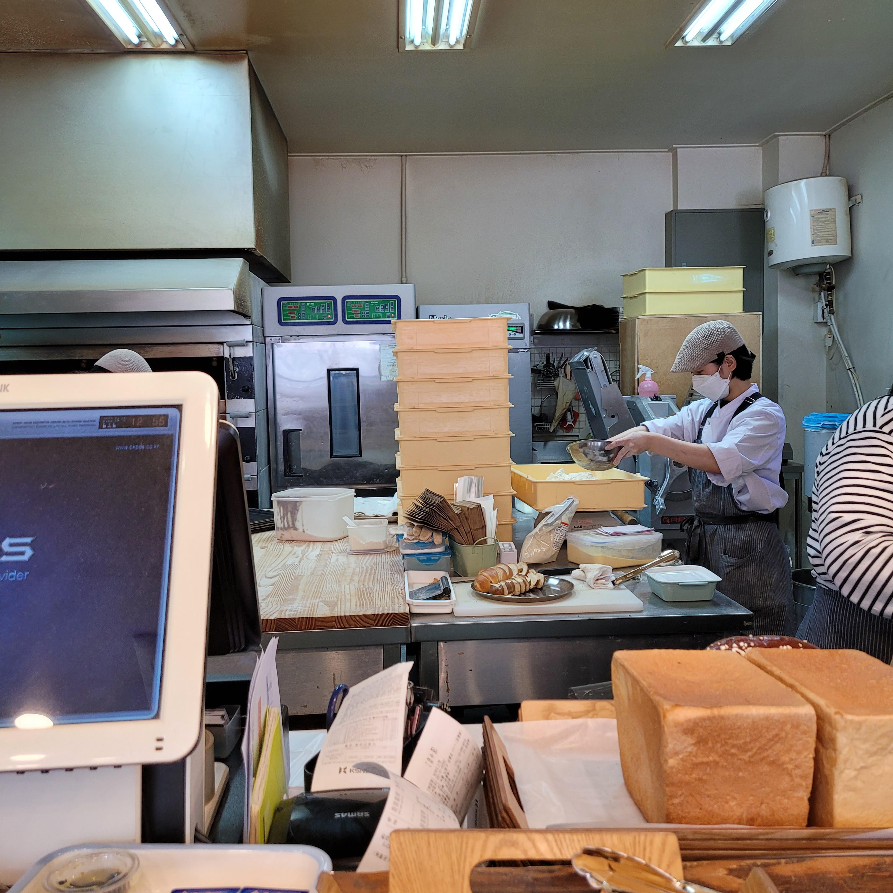오픈형이라서 카운터 뒤에 빵을 굽고 계시는게 보였다.