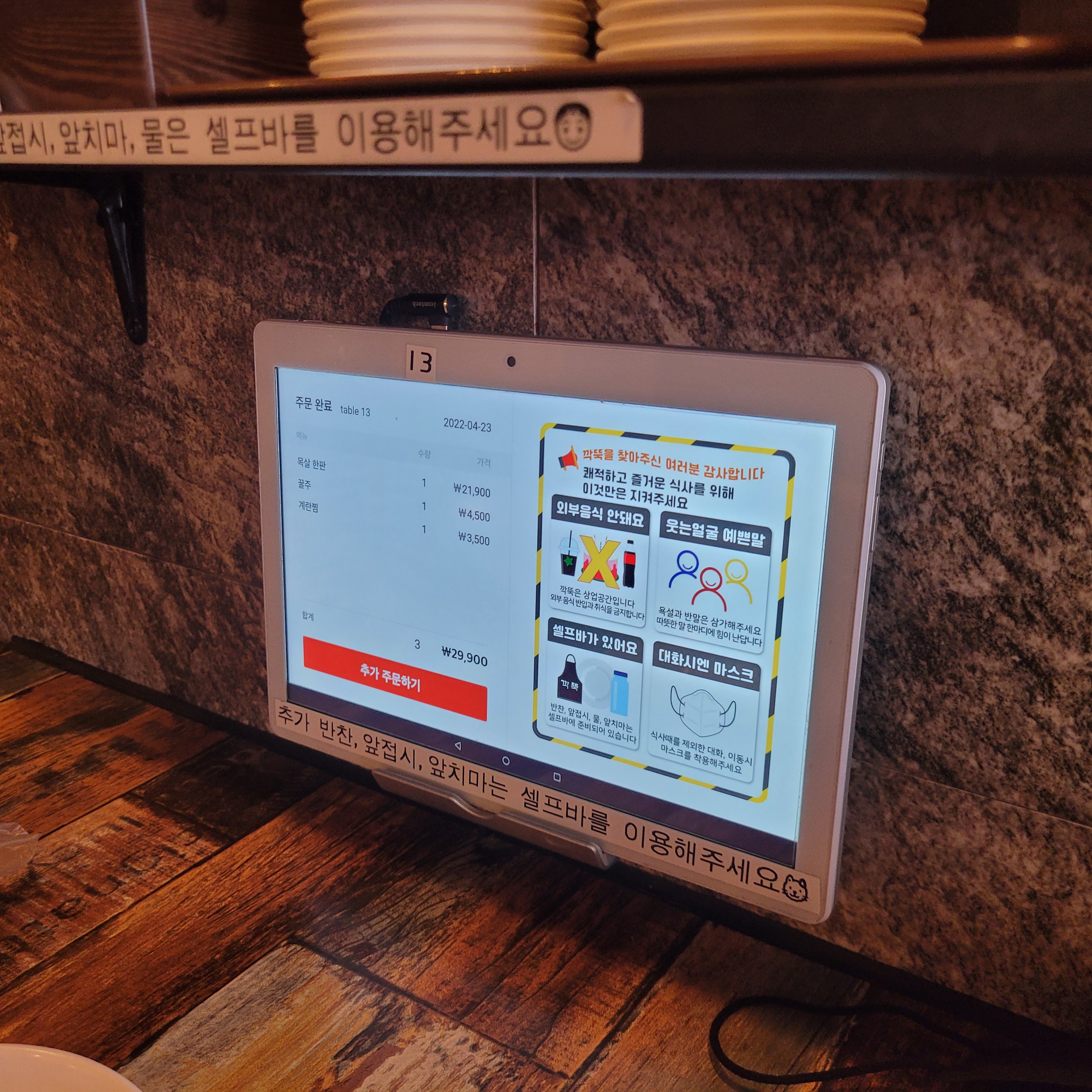 주문은 벽에 붙어있는 패드로 한다. 직원 호출도 여기서 가능하다.