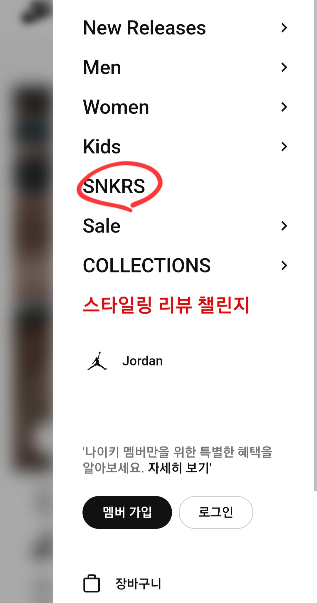 나이키 공홈에 들어가서 SNKRS 를 누르면 된다.