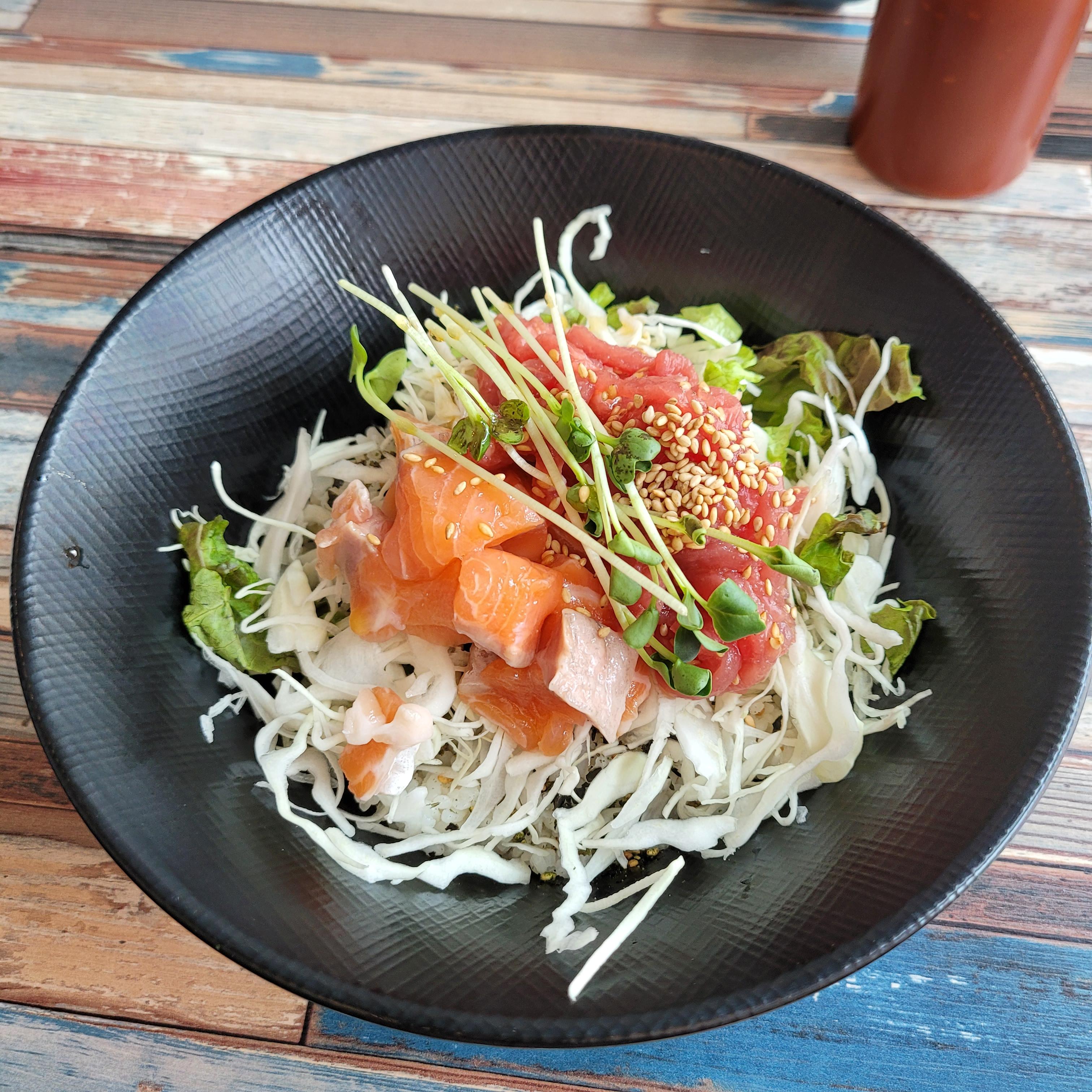 연어 소스를 뿌리고 비벼먹었는데 연어는 탱글탱글하고 육회는 쫄깃한게 밥알을 뚫고 느껴졌다..